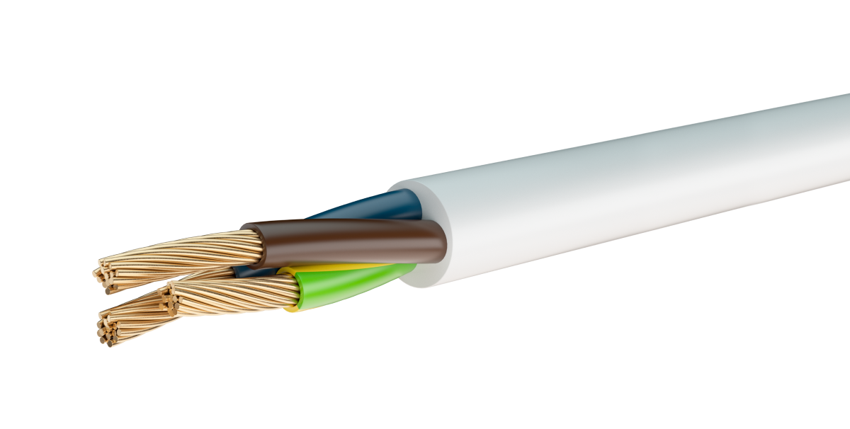 Провод со скрученными медными жилами с ПВХ изоляцией, с ПВХ оболочкой, гибкий, расчитанный на напряжение до 380 В для систем 380/660 В.